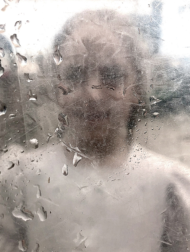 Girl Behind Glass on Rainy Day